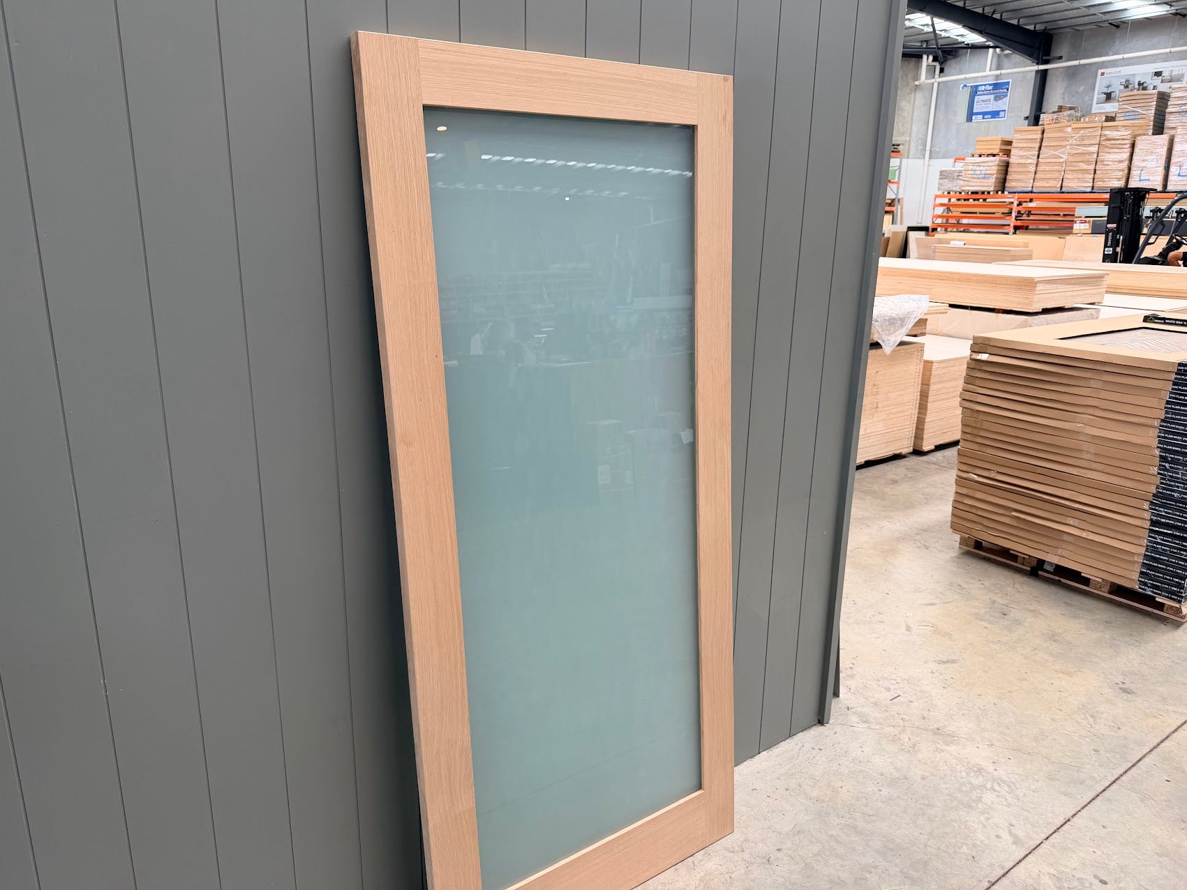 The white oak entry door with glass panels has been designed made for external applications, you could still use this as an internal door such as for your office, family room etc.